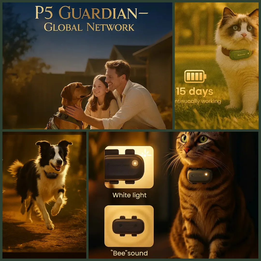 The P5 Guardian – Global NetworkΒ Pet GPS Tracker delivers multi-satellite accuracy, activity tracking, and instant alerts β€” because every step matters when it’s family.